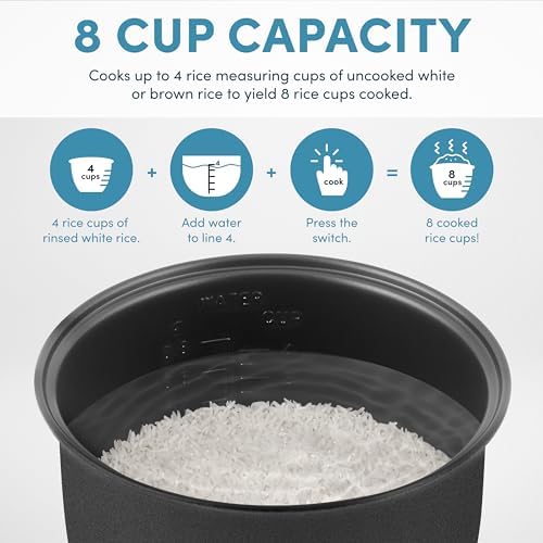 Perfectly prepares 2 to 8 cups of any variety of cooked rice or grains