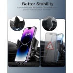 🚗Never Block Airflow: To avoid blockage of your car air vents, the phone holder car offers an extended arm, which is important for exceptional air circulation in your vehicle. As an added benefit, the holder has a phone charging port underneath.