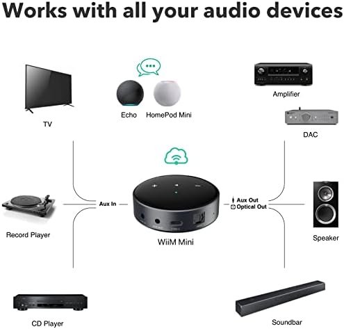 SEAMLESS MULTIROOM STREAMING – Experience the ultimate convenience of streaming music throughout your entire home with WiiM Mini. Enjoy seamless integration with a range of smart speakers, such as AirPlay 2, Amazon Alexa, and our exclusive multiroom feature. Effortlessly form groups with other AirPlay 2 or Alexa devices like Echo and HomePod, or connect multiple WiiM devices for synchronized playback across various audio devices simultaneously.
